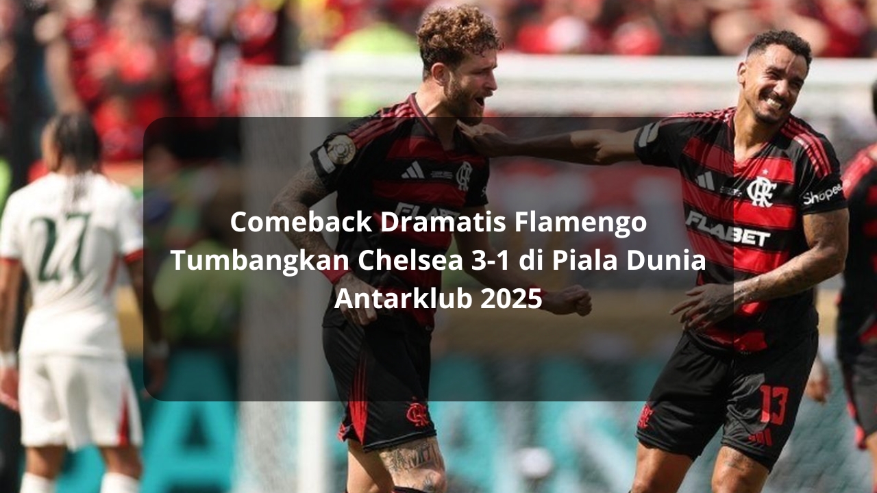 Flamengo berhasil menunjukkan performa luar biasa dengan membalikkan ketertinggalan dan menundukkan Chelsea 3-1 dalam pertandingan grup Piala Dunia Antarklub 2025 yang digelar Sabtu dini hari WIB, 21 Juni 2025. Kemenangan ini membuka lebar peluang wakil Brasil tersebut untuk melaju ke babak selanjutnya.